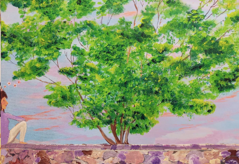 Me apoyo bajo el único granado y me siento en silencio