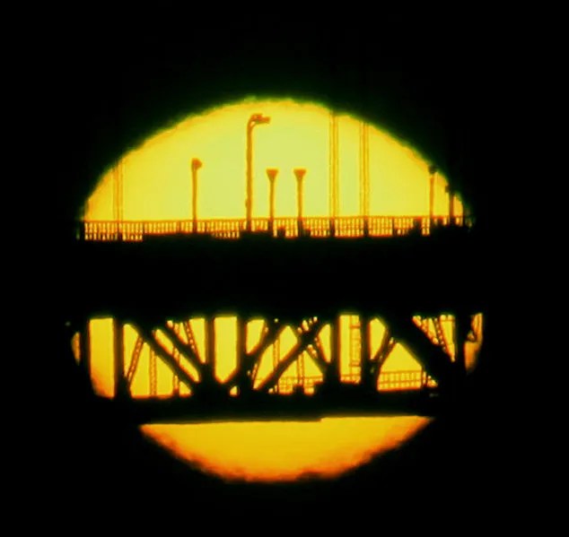 La imagen del Sol se separa ligeramente en sus colores (como un pequeño arcoíris vertical).